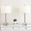 This timeless styled table lamp is unique to its size, standing at just 10.5″ tall to sit perfectly atop your bedroom nightstand, end table, college dorm desk, or child’s room. A round bottom sand nickel stick base is fixed beneath a standard empire fabric shade in a number of different color options to compliment your space as needed. You’ll find the perfect shade color option to suit your decor needs in no time.