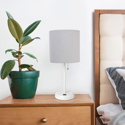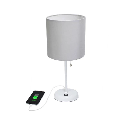 19.5″ Bedside USB Port Feature Metal Table Desk Lamp White With Gray Fabric Shade – Creekwood Home