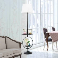 Update your living space with the help of this brushed nickel finish floor lamp. The design is crafted from metal, and has a chic contemporary look thatโs paired with a beautiful beige fabric drum shade. It comes with twin pull chains that rev up the style factor and make it easy to control the light output.