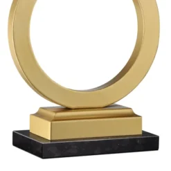 Decorate in style with this set of USB table lamps. The modern design is from the 360 Lighting brand, and features an open ring base in a gold finish. Each lamp has a USB port so you can easily charge phones and other devices and keep them close at hand. Up top are white fabric rectangular lamp shades. With the set of lamps you also get two black marble lamp risers. Place under the lamp bases to give extra height and style to the designs.
