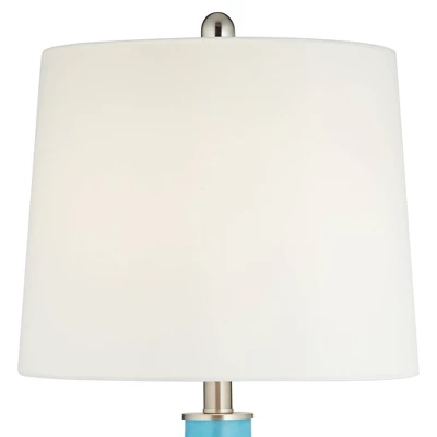 From the 360 Lighting brand, these handsome USB lamps offer both style and function for your decor. The set of two lamps feature a pale blue art glass base topped by tapered white drum shades. They are a wonderful style accent for coastal style rooms or modern decor. Best of all, they feature two built-in USB ports in the lamp bases, allowing you to charge two phones or other devices at once.
