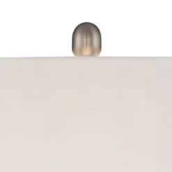 Create a cohesive look in your bedroom or living room with this modern table lamp set. From the 360 Lighting brand, each lamp comes in a sleek brushed nickel finish for a contemporary shine. The metal frame offers an eye-catching geometric look with a curved, opened-up column sitting atop a flat rectangular base. An off-white rectangular lamp shade delivers an angular flair with a charmingly rounded finial on top.
