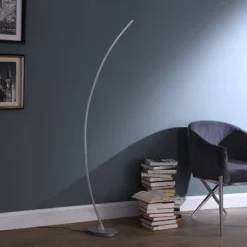 Take a stand with this metal LED floor lamp, appearing as if it belongs in a modern art museum. Illuminate your space in ultra-contemporary style with this 62.25″ Bradie brushed nickel LED arc tube floor lamp! Crafted of aluminum metal in a clean brushed nickel finish, this lamp features a dramatic arched post body on a smooth oval pedestal base. Topping the arch, a curved light features an integrated 18 W LED system to disperse bright light throughout your space. The clean and simple Bradie LED floor features improved design and feather-light concept. Minimalist allure is the distinctive feature of this metal energy-efficient LED floor lamp. You’ll love how this lamp meets the stylish standards of your minimalist home. The energy efficient LEDs produce a warm light that will last for up to 50,000 hours.
