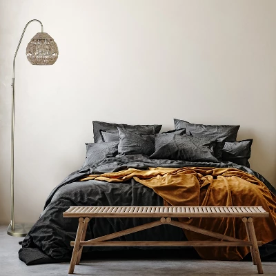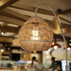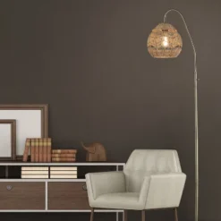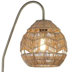 Perfect for your family room, game room or office, you’ll love this 63.5″ High Roswitha Brushed Gold-Colored Iron Floor Lamp with Tan Hemp Rope Shade from River of Goods. This brushed gold-colored iron floor lamp stands over 63 inches tall, and its glass-free shade features an artisanal look, thanks to its open-weave hemp rope construction. A 90-inch cord plugs in to power the lamp’s on/off switch, allowing for easy placement throughout the room. LED compatible, this lovely lamp requires one incandescent 60-watt E26 lightbulb (not included). A great accent for your Bohemian or beach-themed decor, this lamp also works well with modern and contemporary furnishings.