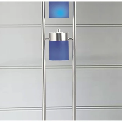 Polished metal base with blue acrylic shades. Direct light exactly where you want it, setting the mood and pumping up the room’s style. Frosted blue shade color gives light a cool glow. UL listed; uses three 60-watt bulbs (not included), CFL Bulb Compatible Three Way Rotary Switch on each shade. This item does not ship to Puerto Rico.