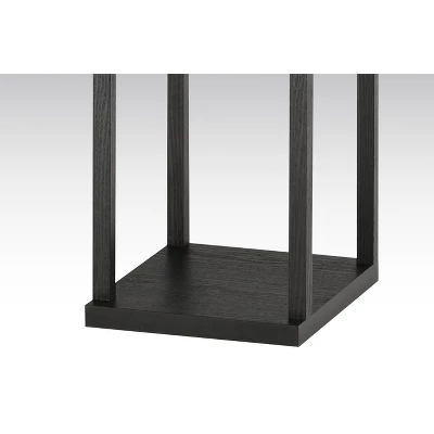 Brighten up your living space with the versatile convenience and striking appeal of the Adesso Titan Tall Shelf Floor Lamp. Standing at 72″ tall, this Lamp has an open box frame made of black MDF veneer with 2 square shelves and the base offering space to display photographs, plants, decorations and mementos. The shade is made of durable poly/cotton and has a collapsible square shape that enhances any decor in your home. Bulb is not included.