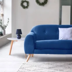 8.66″ Petite Ceramic Orb Base Bedside Table Desk Lamp With Matching Tapered Drum Fabric Shade Blue – Creekwood Home