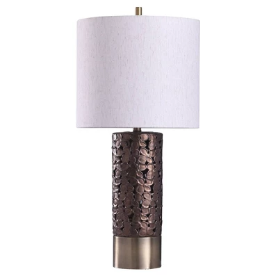Chesham Floral Open Design Column Table Lamp With Drum Shade Brass – StyleCraft