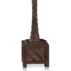 - The body of this lamp is composed of resin that is molded into a coastal palm tree design.