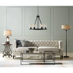 - Mid-Century modern design with rustic farmhouse style from the Franklin Iron Works brand.