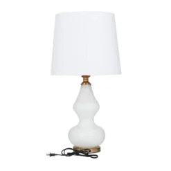 This eye catching lamp makes a charming and chic addition to your surface space and beautifully illuminate its surrounding area. Bring a finishing touch to your home with an inviting appeal with this accent table lamp. A white bottle-inspired table lamp that brings charm and a modern appeal to any room for an instant decor upgrade. Designed with black stopper at the base that prevent sliding around as well as scratching any surface. Comes with 1 socket for medium-sized E26 bulb. Bulb included. This item ships in 1 carton. Cord length measures approximately 60″. Suitable for indoor use only. An accent piece featuring a white polyester drum-shaped shade. Comes with an on/off toggle switch. Modern Inspired.