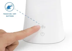 This lamp is ideal for office, computer workstation, reading room, dorm rooms or even in the bedroom as a nightstand light. The adjustable neck, as well as the adjustable brightness and fan speeds allow you to customize the performance of this lamp to your setting and the time of the day. With its bendable neck the tilt angle and the left and right rotation of the lamp head can be adjusted to to adapt to your needs. Its versatile and contemporary design will add style to your workspaces, bedrooms, and office settings. The touch activated controls provide a sleek design and make it that much easier to use. The color temperature is 5500 to 6500 Kelvin, which is equal to daylight color temperature that is easy on your eyes.