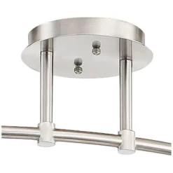 Bring bright lighting and wonderful style to your home with this six-light track fixture from Pro Track®. Boasting three curved sections hosting a total of six lights, this metal fixture is accented with a cool brushed nickel finish. Center arm is fixed, but out two arms swivel adjust. The adjustable bullet lights add to the modern – minimalist style.