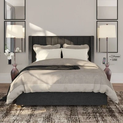 A handsome design that offers exceptional function and utility. Light up your living space with this contemporary industrial floor lamp. It has a glass tray table built into the center, along with a USB port and power outlet, allowing you to charge smartphones and other devices. This lamp is perfect for a bedroom, living room, study area, or reading space.