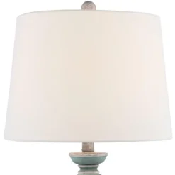 - Set of 2 USB lamps. Each is 25 1/2″ high overall. Shades are 12″ wide at the top x 14″ wide at the bottom x 10″ high.