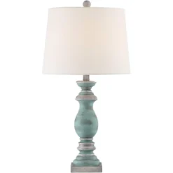 Take advantage of classic styling with fresh design upgrades. This lovely set of two country cottage table lamps delivers artistic charm as well as a familiar classic ambiance. A sculpted body with a weathered blue-gray washed finish makes each lamp completely versatile and a good fit for traditional living or sleep spaces.