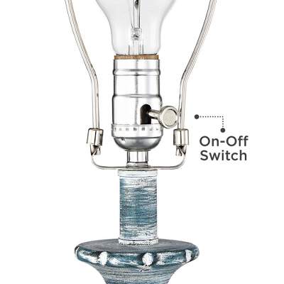 Traditional shape gets a modern makeover with the pop of color on this set of two table lamps from Regency Hill. Constructed of polyresin, the vintage-inspired silhouette features a blue wash finish over its intricate shapes and defined lines. Radiate warmth throughout any space with a flip of the on-off switches.