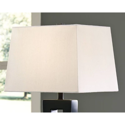 Make a bold and beautiful statement with this table lamp. Structured hardback shade and sculptural base are the perfect pairing for a clean-lined, ultra-contemporary look. Matte black finished table lamp. Empire rectangle hardback shade. 3-way switch. (1) E26 socket, type A bulb recommended – 150 watts max or 25 watts max CFL. Signature Design by Ashley is a registered trademark of Ashley Furniture Industries, Inc.