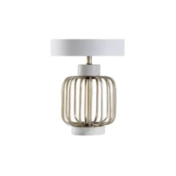 Accent your home décor with this table lamp from the Signature Collection by StyleCraft Home Collection. Imposing materials give this modern style table lamp admirable presence. The base features a combination of marble and iron, with white and brass finishes creating a vibrant visual. The white cylindrical shade adds to the structure’s symmetry. Any contemporary office, living room or dining room will get a stylish boost from this chic stone and metal transitional table lamp. It will pair well with glame and luxe styling. Regardless if you put it in the bedroom or family room, this table lamp stands out. Suitable for residential use in a dry location. This modern table lamp is UL listed in compliance with the nationally recognized safety standards. Due to lighting and monitor differences, actual colors and finishes may vary slightly from what appears online.